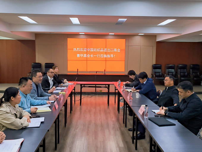 3月12日,中國紡織商會會長曹甲昌以及會員部主任代克勝、市場部副主任張瀚濤、信息部賈寧一行4人到我司調(diào)研并召開座談。