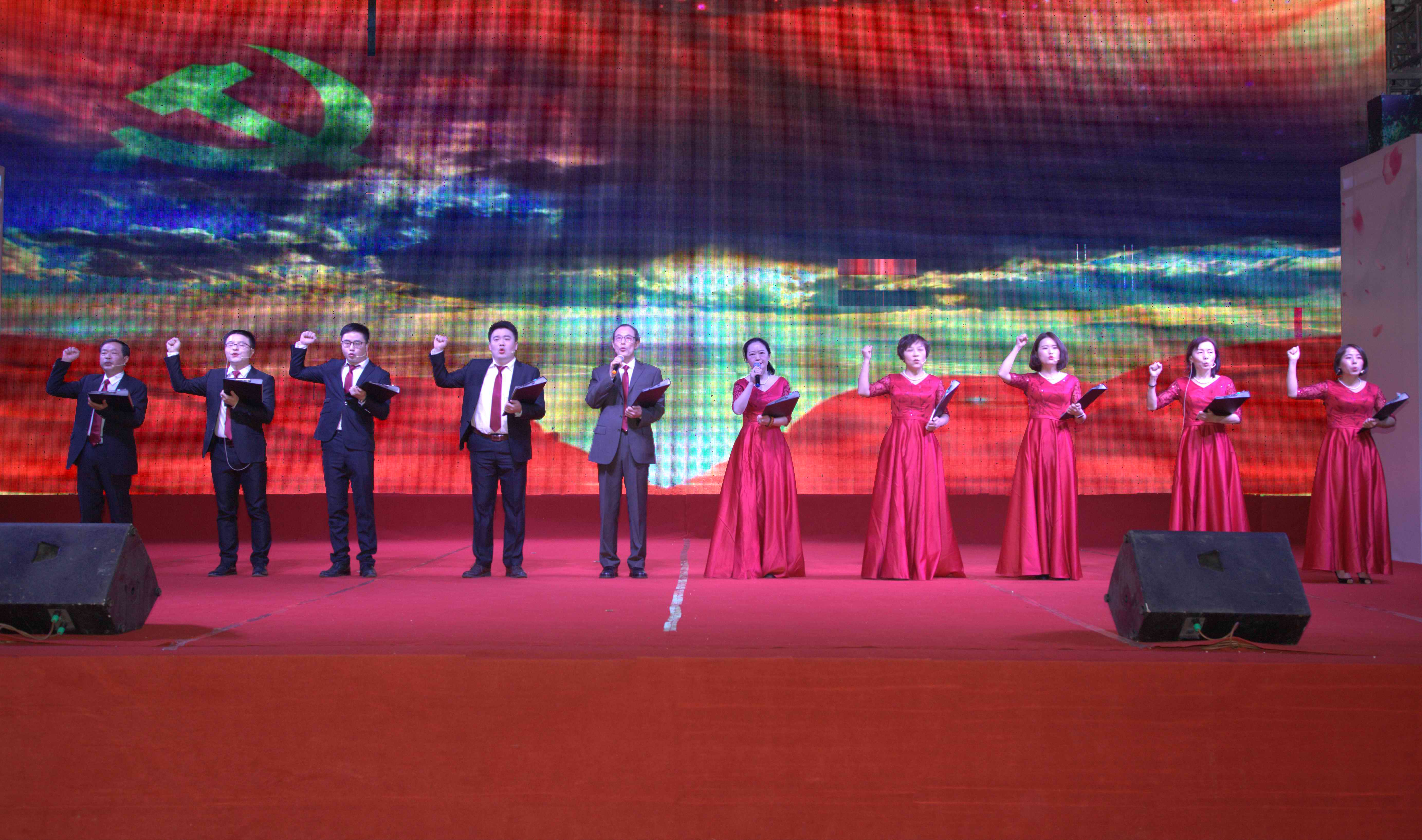 ? ? 接下來的新春聯(lián)歡在詩朗誦《不忘初心》中拉開序幕,舞蹈、歌曲、小品、話劇展現(xiàn)了工藝人多姿多彩的另一面。舞蹈《卡路里》、《甜味disco》讓人看到年輕人的青春與活力;歌曲《風(fēng)吹麥浪》表現(xiàn)了努力奮斗之后豐收的喜悅;小品《工藝聯(lián)播》《丑洞房》中犀利、幽默的語言,贏得臺下觀眾陣陣歡笑與掌聲。手語舞《冰凌花》、舞臺劇《態(tài)度》中新穎的表演給晚會增色不少。最讓人期待的是《天鵝舞》,“天鵝們”一出場便驚艷四座,穿插其中的街舞、美聲表演,更是令人贊不絕口。最后,全體演職人員走上舞臺一起合唱《明天會更好》,將晚會的氣氛推到最高點。晚宴后還舉辦了篝火晚會,天公作美,月色下盡是歡笑與感動。